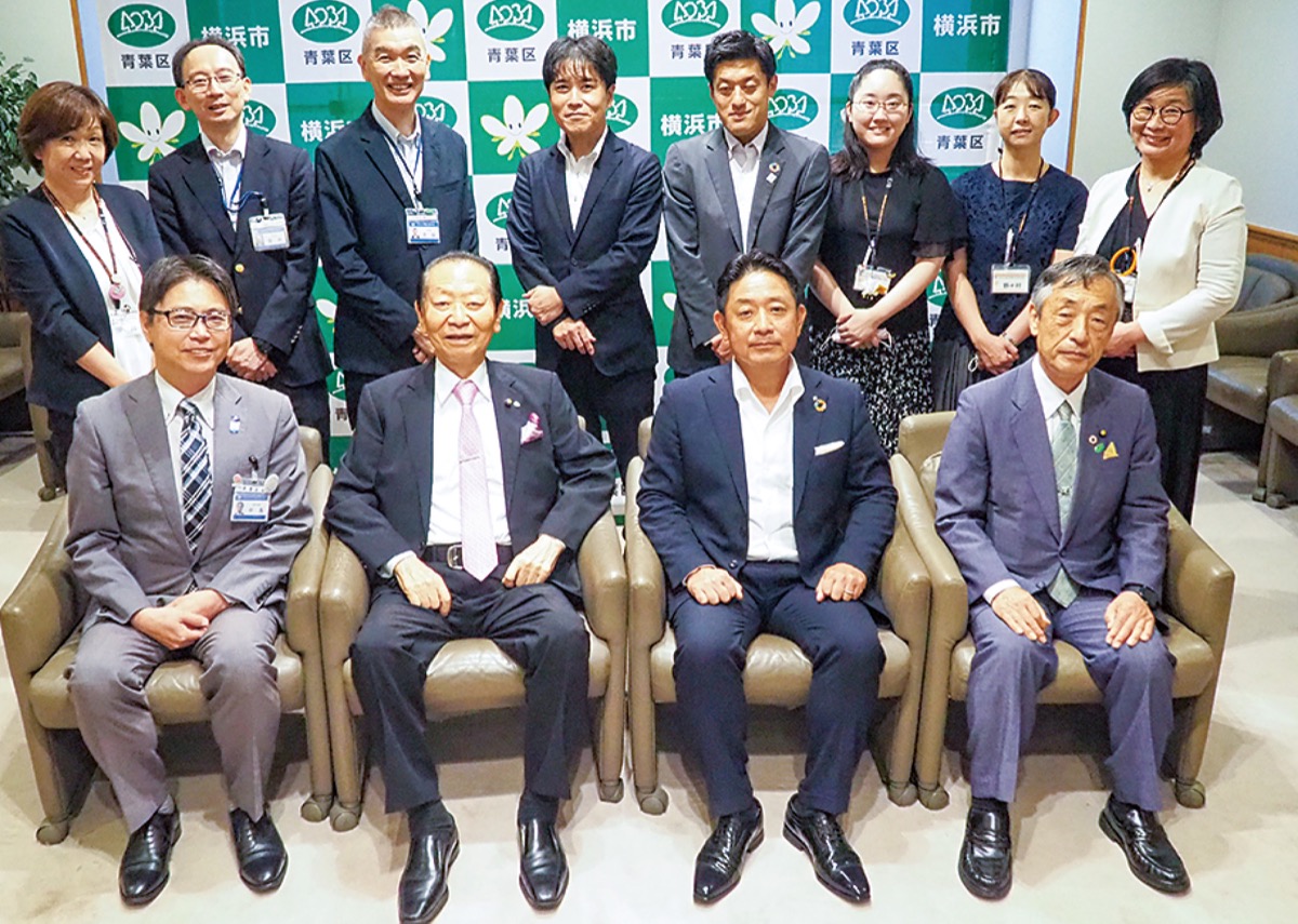 式には青葉区社会福祉協議会の松澤孝郎顧問や関根宏一会長、横浜銀行東部地域本部の平間武志本部長に加え、中島隆雄青葉区長らが出席。まず平間本部長から目録が中島区長に手渡され、続いて関根会長から平間本部長に感謝状が贈られた。