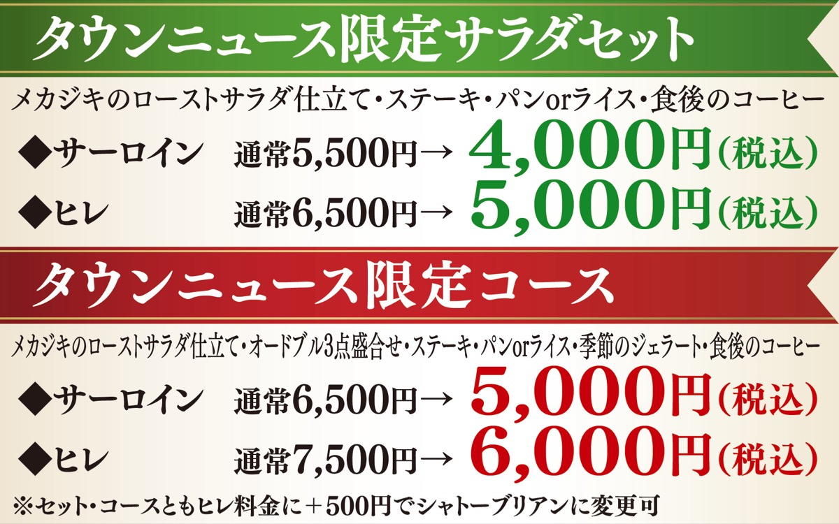 8月27日(日)までの期間限定でお盆期間も休まず営業。ランチもディナーも共通となる。店内での食事は完全予約制なので「タウンニュースを見た」と電話を。上赤身ステーキ重弁当もぜひ。