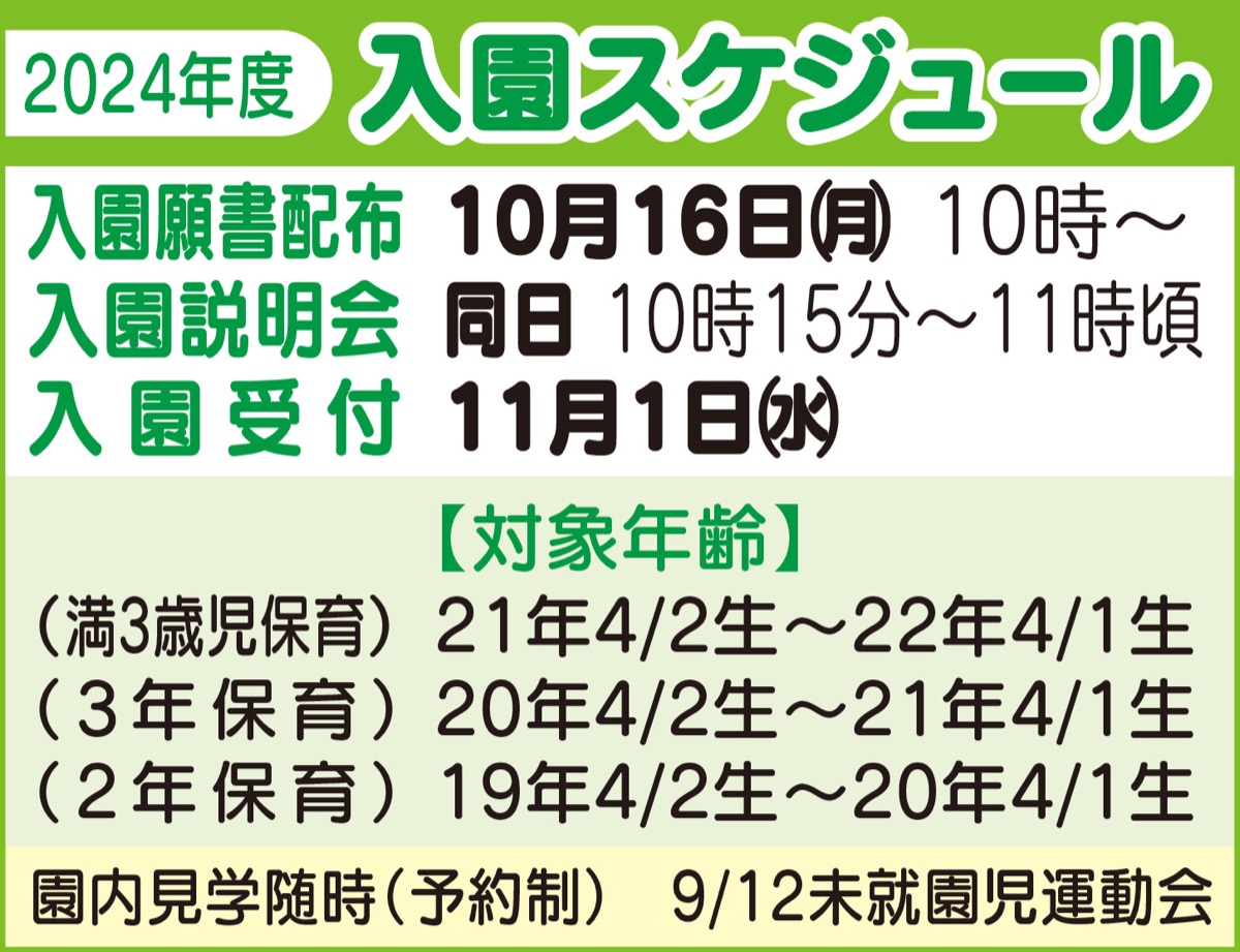 満3歳児と年少(3年保育)、年中(2年保育)を募集
