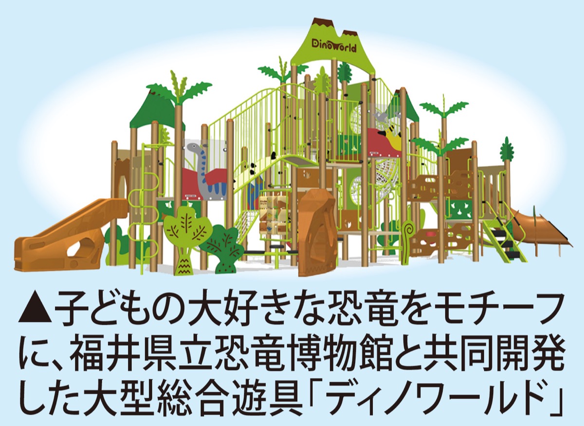 広く安全な園庭には今秋、大型総合遊具「ディノワールド」を設置。運動能力を育むように設計された最新型の遊具で、園児も夢中になりそう。