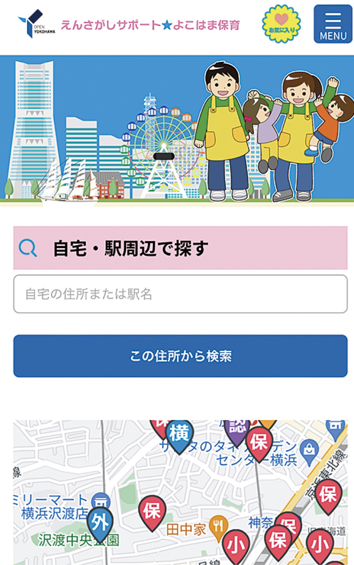 横浜市はこのほど、市内約1400カ所の保育施設の情報を網羅したウェブサイト「えんさがしサポート★よこはま保育」を開設した=写真。施設選びを支援し、保護者の保育所探しに役立ててもらうのが目的。