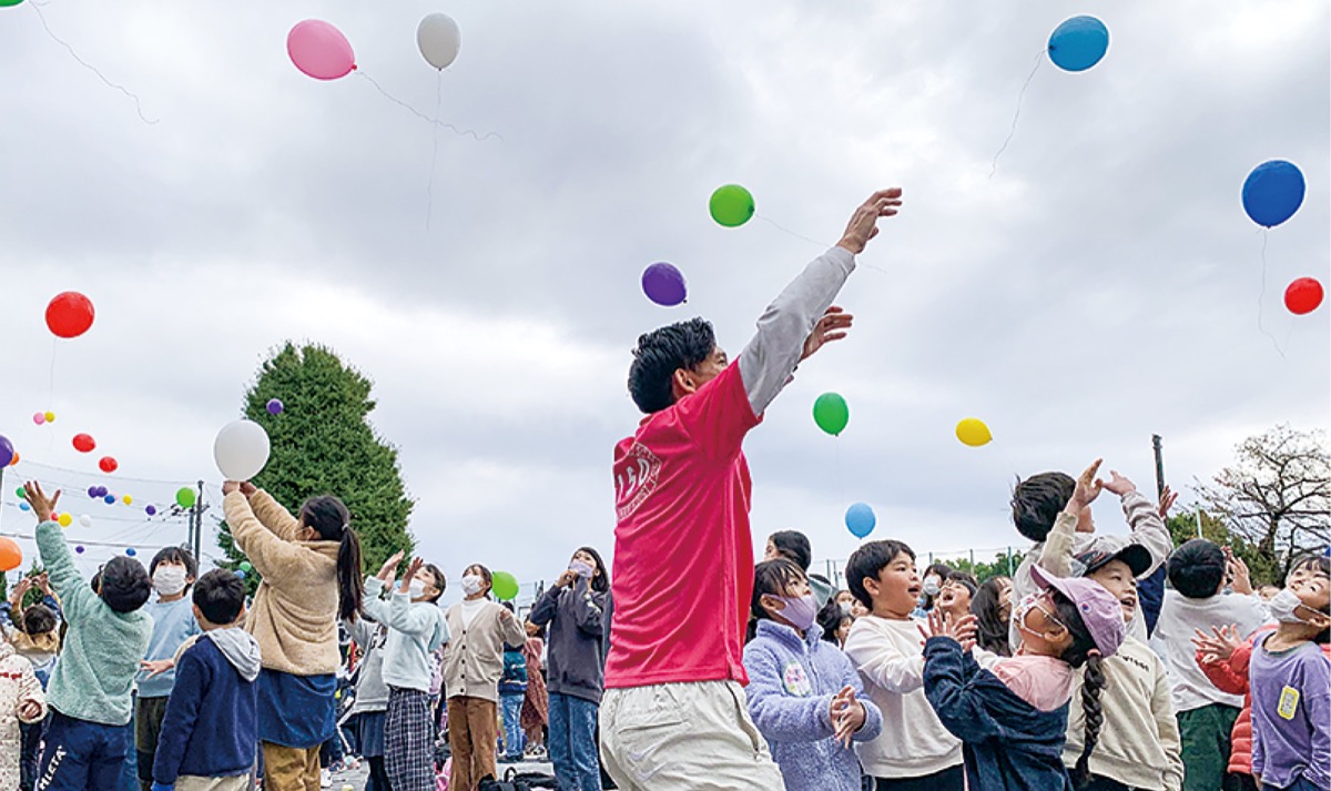 最後は児童によるバルーンリリース。大空に色とりどりの風船が放たれると、児童は楽しそうに歓声を上げていた。