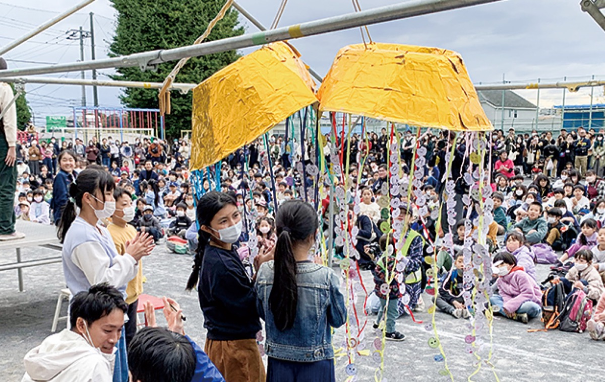11月18日には「田奈のみのり」と記念セレモニーが田奈小学校で行われた。例年、5年生による餅つきに加え、他学年の学習成果の発表の場となる「田奈のみのり」。今年は150周年企画として、餅つきは残しながら関わりある地域の人と学ぶ機会とした。記念セレモニーでは各学年がこの日のために準備してきた巨大なケーキ、歌とダンス、くす玉やタイムカプセルなどが次々と披露された。