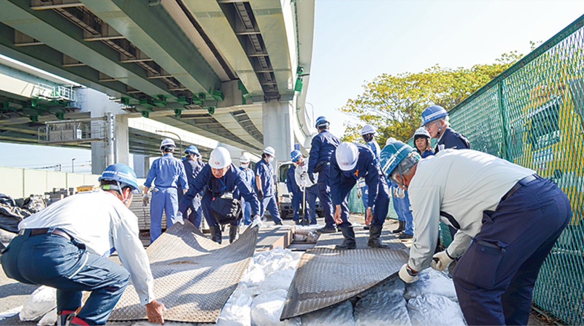 災害発生時に区民の安全・安心を守るため、土木事務所との協定により緊急出動を行う同会は、日頃から訓練を重ねている。今年は例年行っている震災時の危険箇所について話し合う机上訓練に加え、がれきなどを処理して救援ルートを確保する道路啓開訓練として、段差解消訓練とゴージャッキ訓練を初めて実施した。