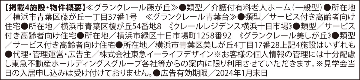「グランクレール」「クレールレジデンス」は東急不動産HDグループが運営するシニア向け住宅。長年の住宅づくりで培った知見とグループ力を結集し、神奈川・東京で22住宅・約2030室を展開している。