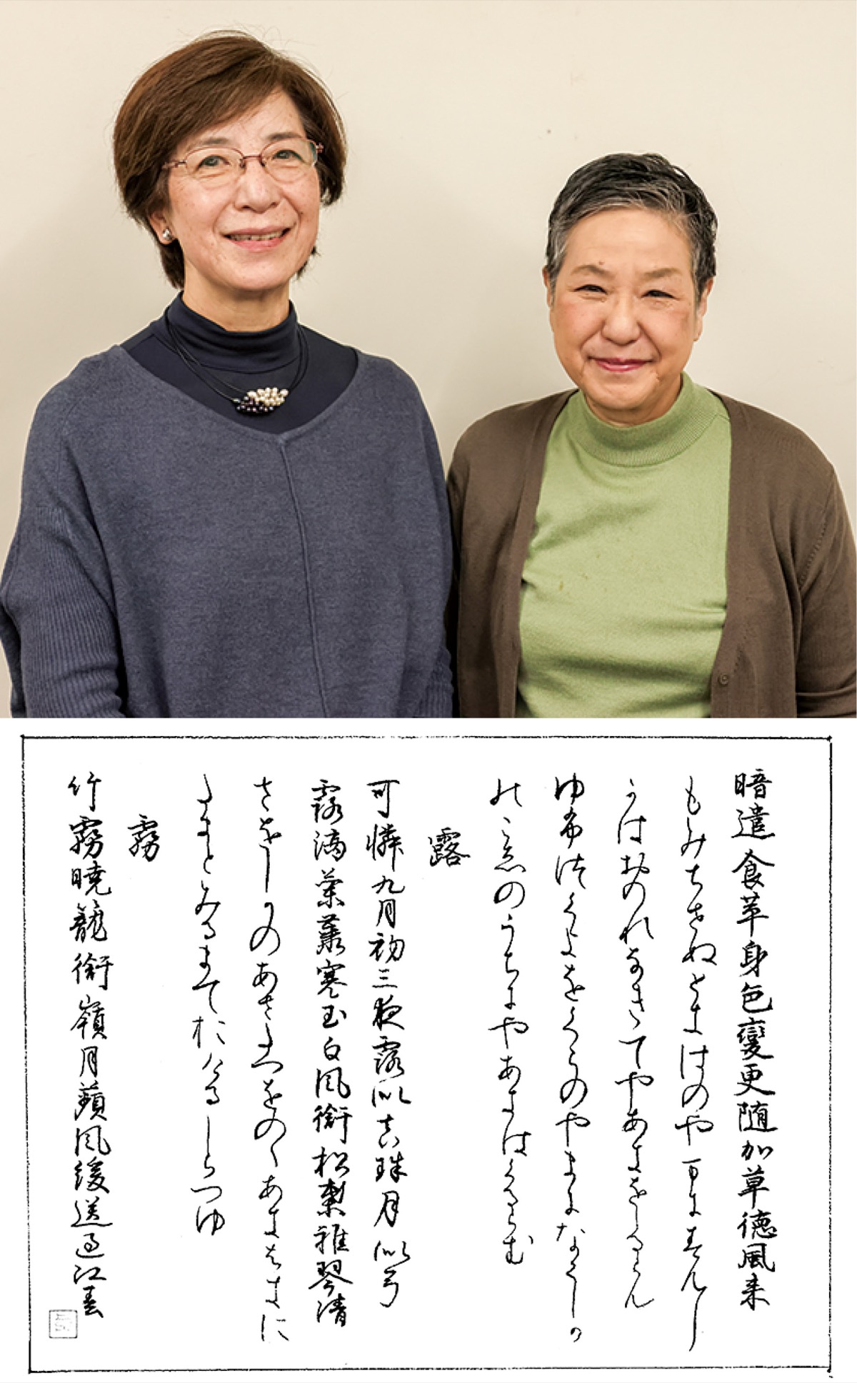 青葉区黒須田在住の見並良子さん(72)の作品が第73回全国書道コンクールの「毛筆の部・一般・かな」で最優秀大賞に選ばれた。作品は12月25日まで国立新美術館で開催中の「第52回全書芸展」で展示されている。