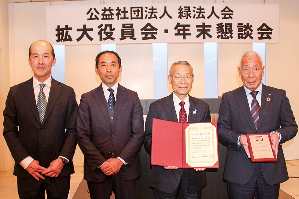 公益社団法人緑法人会(工藤隆晃会長)が、朝食提供活動をはじめとする田奈高校への支援活動の功績が認められ、こども家庭庁から「こども・若者活動奨励章」を贈られた。12月の緑法人会理事会で記念の盾が披露され、田奈高校の梅田俊輔校長からお礼の言葉も述べられた。
