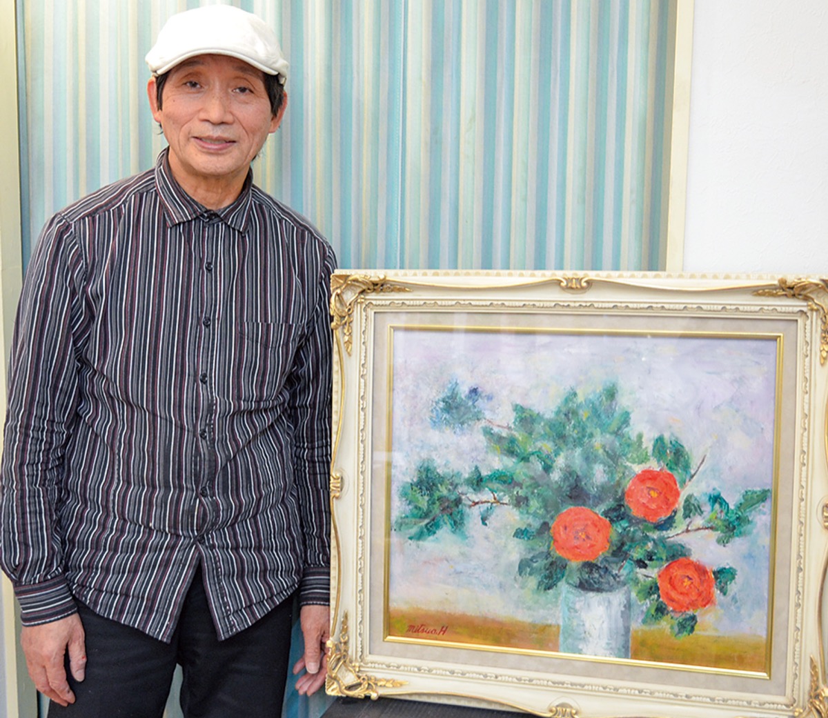美容師だけでなく、画家としても活躍する早川オーナー。社会情勢を反映して描く、絵画は日本を越え世界の絵画展でも受賞してきた。昨年描いた「夢椿」は、「葉月いろどり芸術展」で大賞に選ばれている。厳しい冬に凛と咲く椿の花-。その強さに心を打たれたという。「1人では生きていけなくても、3人いれば強い力になる」と人間関係が希薄化する現代だからこそ、そんな思いを込めて3輪描いた。明るい話題が少なかったここ数年だが、令和6年の幕開けに「希望を持ち、力強く生きること」と抱負を語ってくれた。