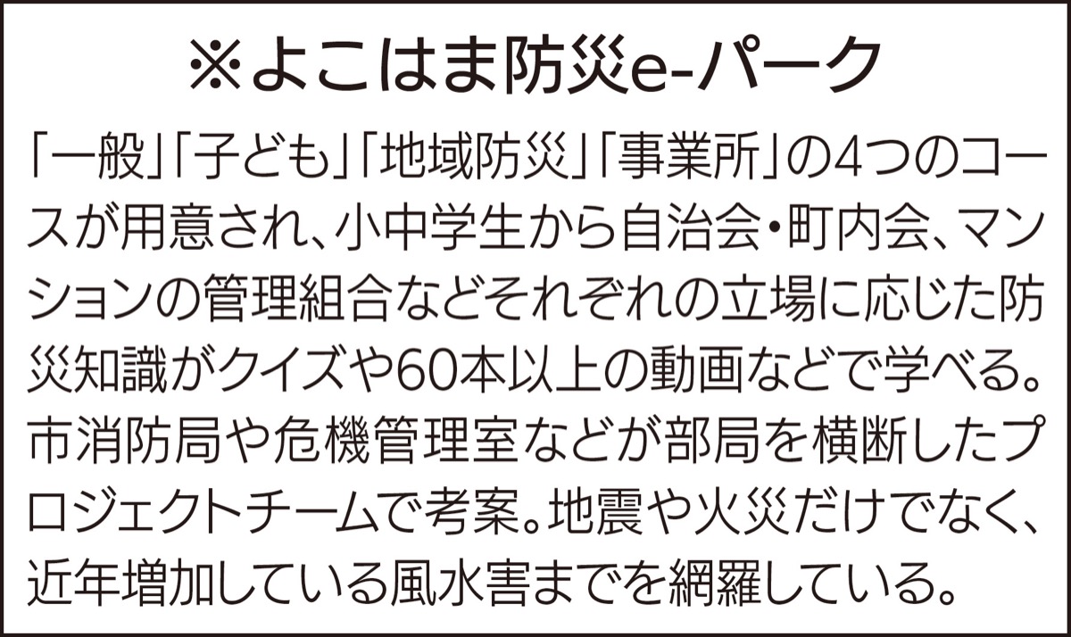 北陸地方に甚大な被害をもたらしている能登半島地震は、改めて自然災害に対する事前の備えの必要性を認識させられた。横浜市が災害の「予防分野の取り組み」として、昨年開設したのが、オンラインサイト「よこはま防災e-パーク」(※)。気軽に防災を学べる仕組みとして、注目が集まっている。