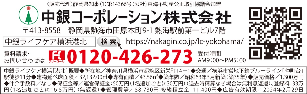中銀ライフケア横浜[港北]は、自由に楽しく安心して暮らしたいアクティブシニアが多く住まうシニア向け分譲マンション(入居時自立)。大きな特長の一つが入居者の自立意識が高い点。毎日を自由で意欲的に生活する人が多く、入居者同士で自主的に集うサークル活動は34クラスと多彩。趣味やコミュニケーションを楽しむ共用スペースは、高級感漂うラウンジや大浴場、図書室、ビリヤードコーナー、ゴルフ練習場など充実している。館内で調理される栄養バランスにこだわった美味しい食事も魅力。また、体調不良や緊急時など、もしもの時も看護師が24時間常駐しているので安心だ。全室に緊急コールやチェックセンサーも完備されている。2月1日(木)・2日(金)・3日(土)には「体験昼食付案内会」を開催する。各日5組限定。予約制。参加費無料。モデルルームは、家具・家電付きのため、即入居可能だ。施設の詳細や雰囲気を体験したい人は気軽に問い合わせを。