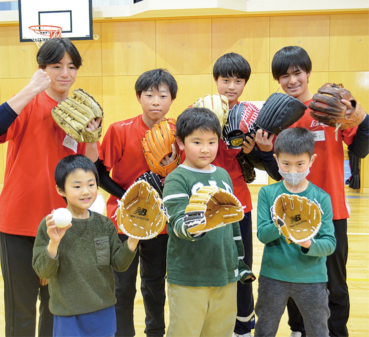 部員の古澤望さん(2年)は「自分は幼稚園の年長から始めたが、公園で野球遊びをすることが今は禁止されていたり、野球を経験している人は減っている。大谷選手のグラブは軽くて児童も使いやすそう。今回の教室で子どもたちの笑顔もたくさん見られた。これを機に野球に興味を持ってくれたら嬉しい」と話した。菅澤監督は「グラブの活用促進を後押しする地域連携活動として野球を教えるだけでなく、地域とのつながりも強化された。大谷グローブがそんな空間も生み出したのでは」と振り返った。