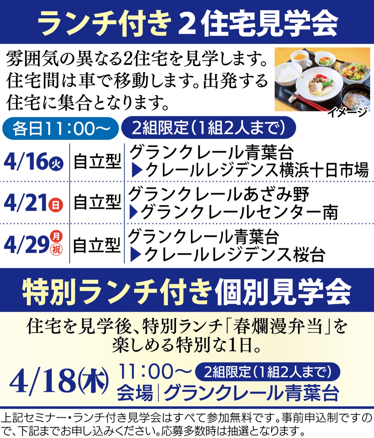 青葉台とあざみ野で開催 ランチ付き見学会も受付中