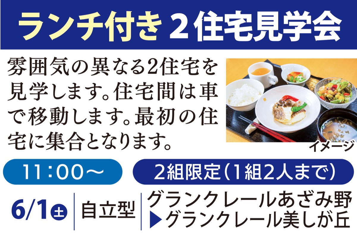 その他、グランクレールあざみ野と一緒に見学する「ランチ付き2住宅見学会」も開催中=日程表参照。セミナーも含めて、すべて事前予約制なので、下記まで電話を。