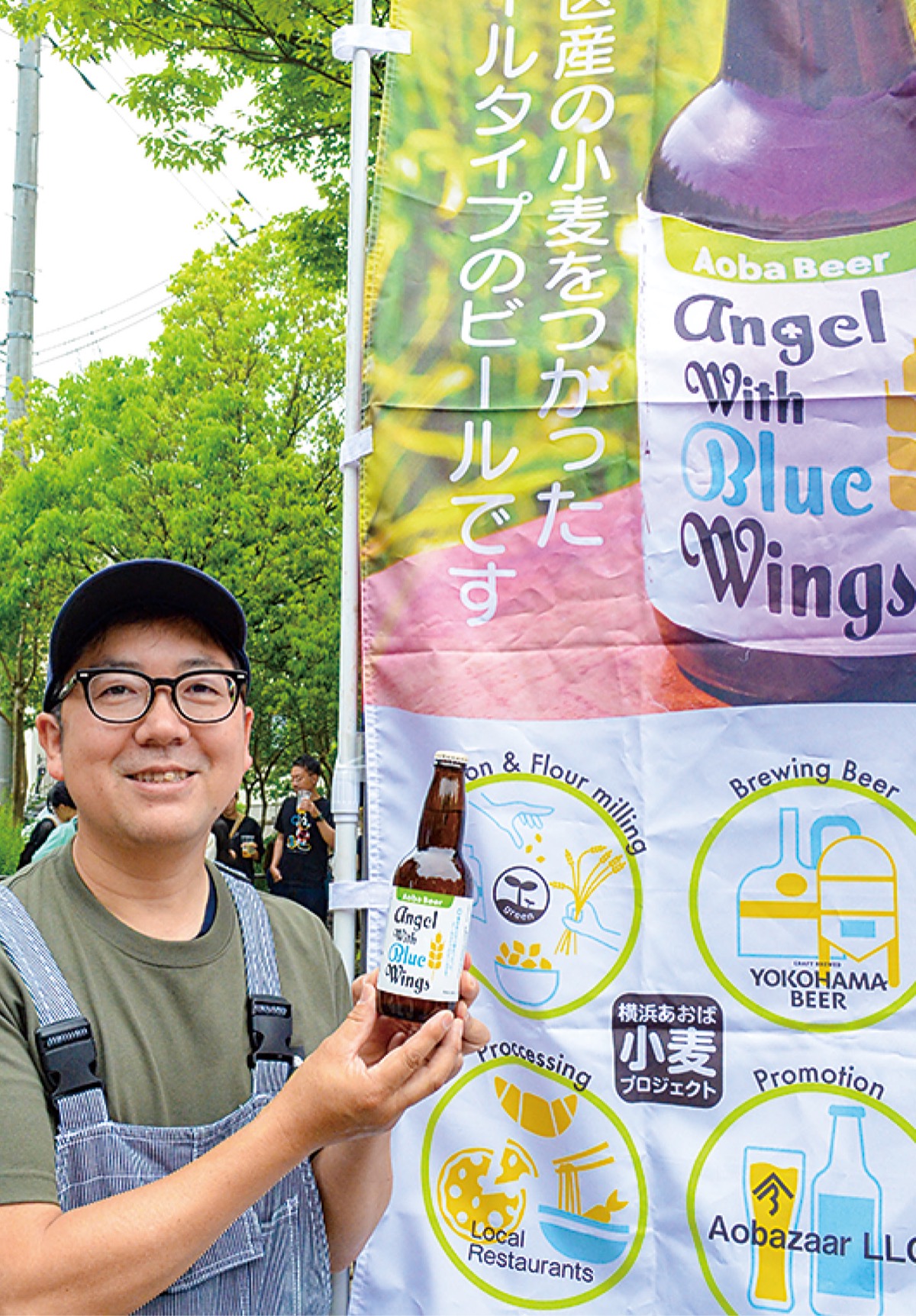 青葉区産小麦を使用した地産地消に取り組んでいる「横浜あおば小麦プロジェクト」。同小麦を使用したエールタイプの地元産ビール「Angel With Blue Wings(通称・あおばビール)」が今年も期間限定で販売中だ。青葉台東急フードショー、森野屋酒店、酒のあさの 谷本店などで販売している他、区内飲食店約30店舗で提供している。売切次第終了。