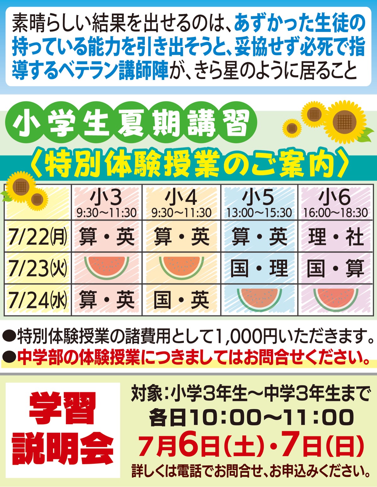 小・中学生の夏期講習