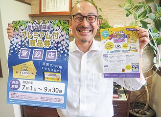 プレミアム付商品券は「みよし治療室」(藤が丘2の4の14)、「フラワーすみれ」(藤が丘2の3の2)、「浅野商店 下谷本町本店」(下谷本町525)、「理容ファミリー」(藤が丘1の15の3)、「ドツテテ柿の木台」(柿の木台3の3)、「トヤマ時計眼鏡店」(藤が丘1の28の9)の6店舗で発売中。利用期間は7月1日(月)から9月30日(月)まで。藤が丘商店会に加盟し、登録店ポスターを掲示した40店舗で利用できる。