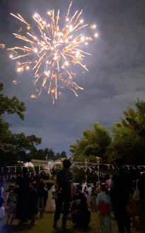 野外DVD鑑賞で日が暮れるのを待った後は、同園恒例の花火が幼稚園の空に打ち上がり、園児から大歓声が聞こえてきた。花火は煙火打揚従事者の資格を持つ石渡園長や理事長、卒園生らで毎年打ち上げている。赤から銀色に変わる仕掛け花火のナイアガラでフィナーレを迎え、観客から拍手が沸き上がっていた。