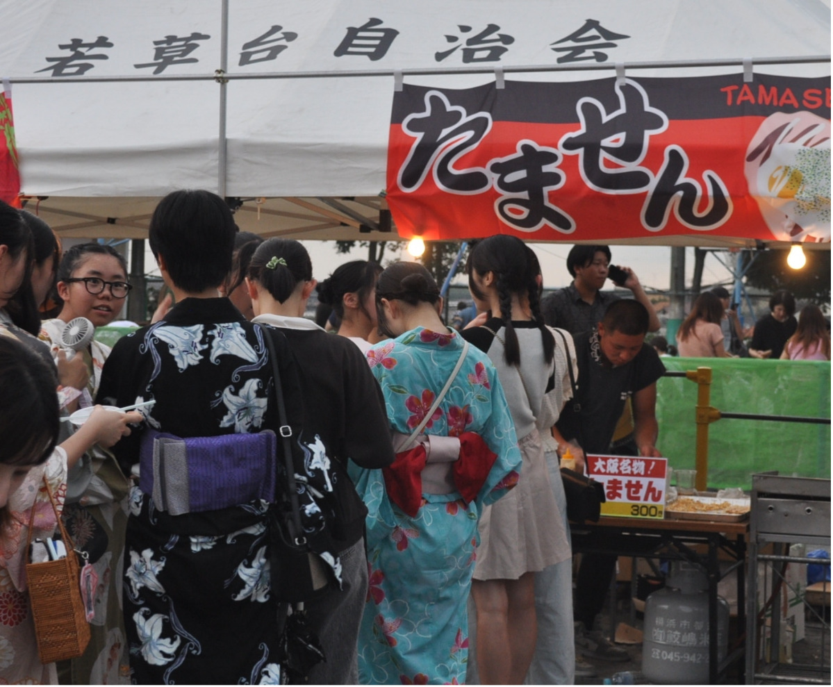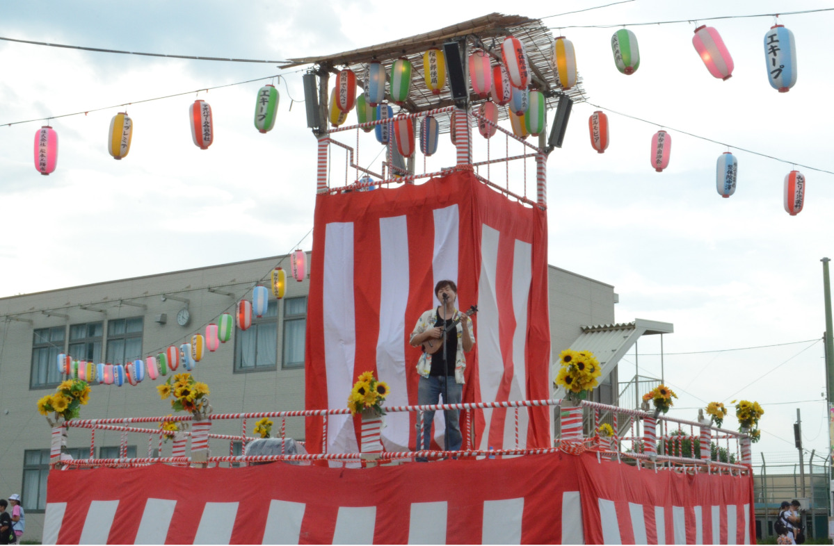 うだるような暑さの中、会場には多くの人が集まり、盆踊りや夜店を楽しむ声があちらこちらで上がっていた。子どもみこしや子ども花笠音頭、桐蔭学園和太鼓部や太鼓集団「鼓粋」のパフォーマンスなどが来場者を盛り上げた。また、青葉台出身のウクレレ歌手・HACHIさんが出演し、青葉区制30周年を記念して制作した楽曲『アオバノココロ。』を披露した。