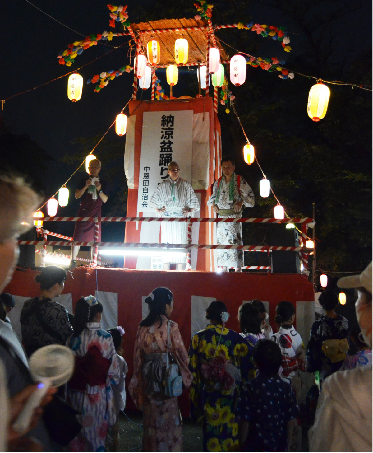 中恩田自治会が主催する「納涼盆踊り大会」が7月27日、恩田町の神明社で開催された。