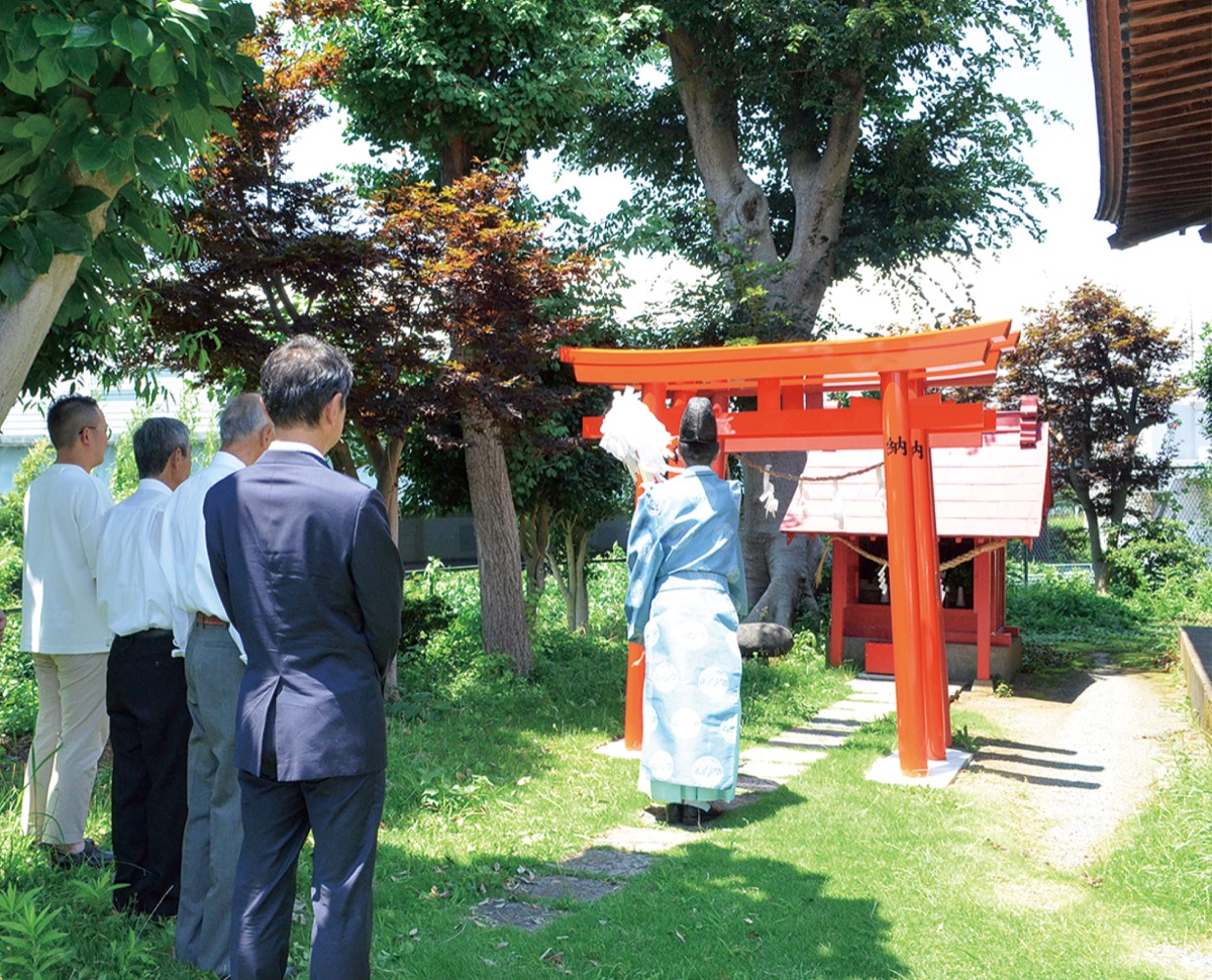 当日は宮司が祝詞を奏上。同社から宮川大輝常務取締役と和崎経昌さんが出席したほか、奉賛会の会員らが集まり、杉山神社に玉串を納めた。