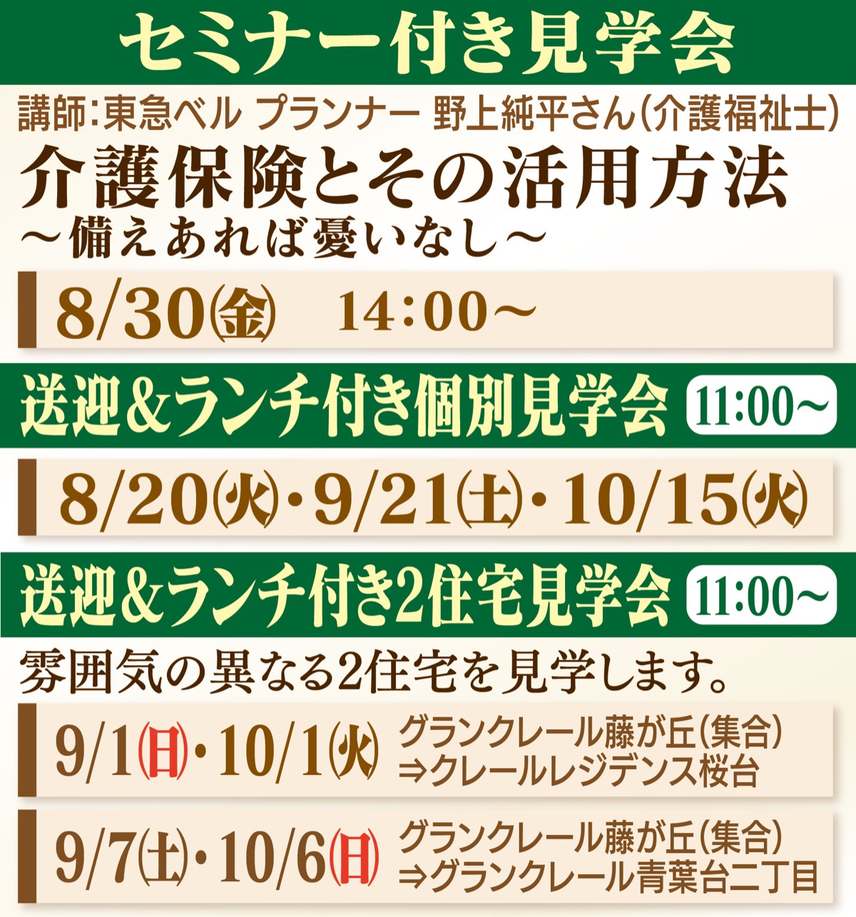 東急不動産HDグループのシニア向け住宅「グランクレール藤が丘」で8月30日(金)午後2時から無料セミナー「介護保険とその活用方法」と見学会が開催される。