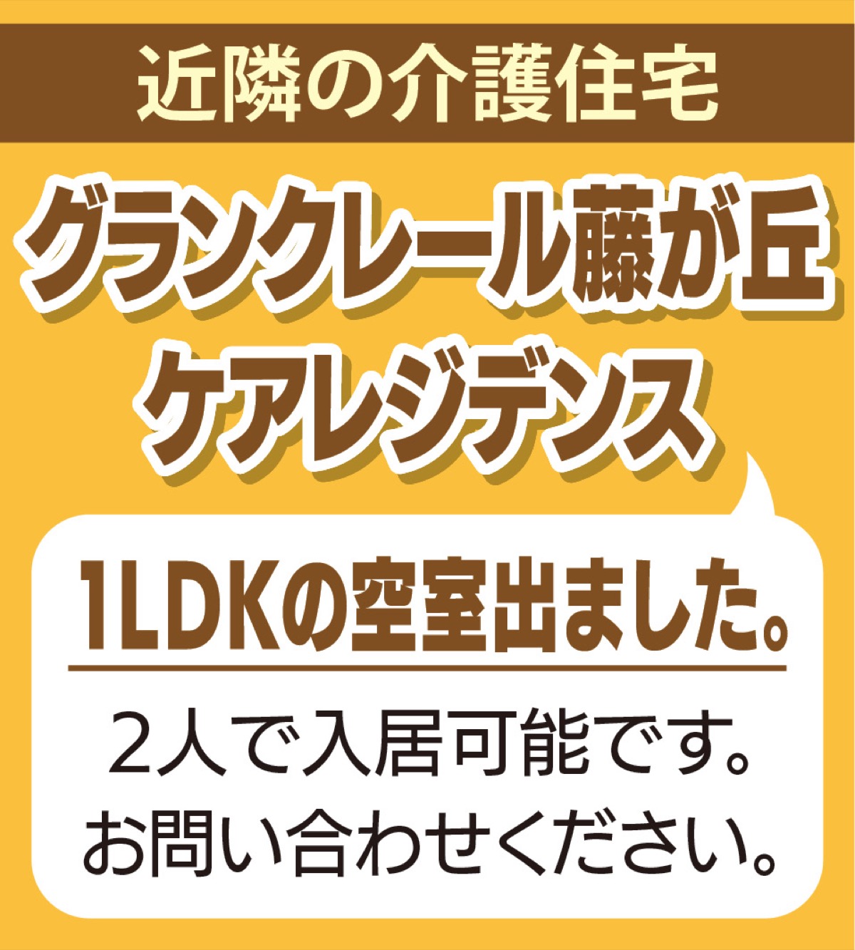 現在、配偶者や親を介護中、または介護予定の家族を対象に自慢のランチ付き個別見学会を企画。その他、希望の日時で対応する個別見学会も開催しているので、どちらでも気軽に参加を。住まい探しの参考になるはずだ。見学会は事前予約制・定員制。詳しくは問い合わせを。