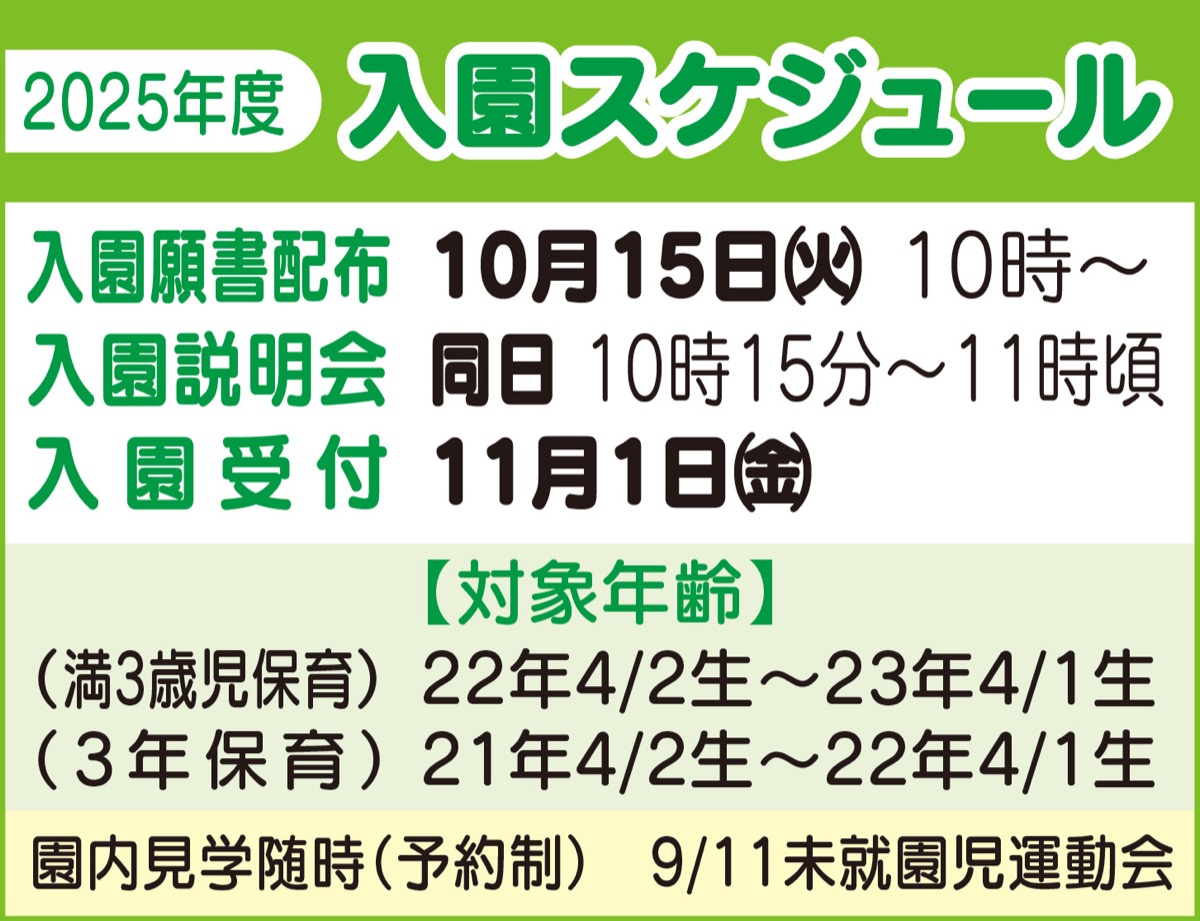 満3歳児入園と3年保育入園を募集