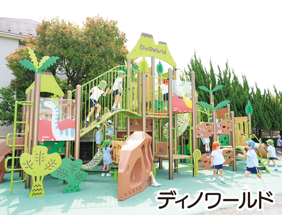 駅近ながら広く安全な園庭があり、最新の大型遊具「ディノワールド」を昨秋設置するなど設備も充実。また、同じ運営のエンゼルスイミングスクールで週に1度程度、水泳を学ぶなどカリキュラムも魅力的だ。給食は質の高い自園調理(詳細は中面特集を参照)なのも保護者からは好評だ。
