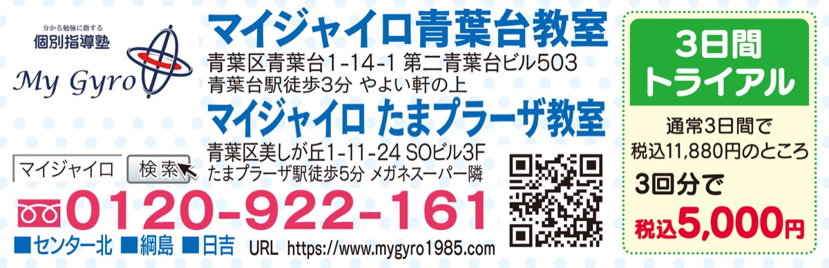丁寧な個別指導と目配り・気配りの効いた自立学習を3回受講できるトライアルを、今なら税込5000円で実施中。「まずは最寄りの教室まで、HP(ホームページ)からメールか電話にてお問合せを」