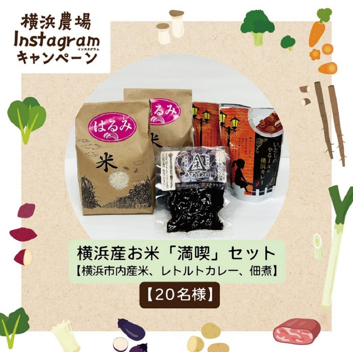 2つ目は「横浜農場Instagramキャンペーン」。横浜農場Instagramは、市が市内の農業の魅力を発信するために運営している。横浜農場公式Instagramをフォローし、指定の投稿に「いいね!」をした人を対象に、抽選で計40人に横浜産の農産物セットがプレゼントされる。11月1日から30日まで。詳しくは市のサイト(https://www.city.yokohama.lg.jp/kurashi/machizukuri-kankyo/nochi/manabu/yokohama_farm.html)で。
