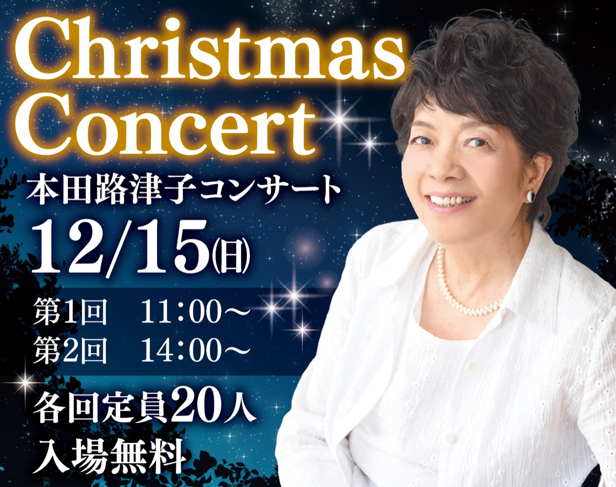 カレッジフォークの第一人者としてブームをけん引し、現在はゴスペルシンガーとして活躍する本田さん。当日はクリスマス・キャロル『かいばおけの干し草に』の他、『秋でもないのに』『耳をすましてごらん』などの名曲も予定。
