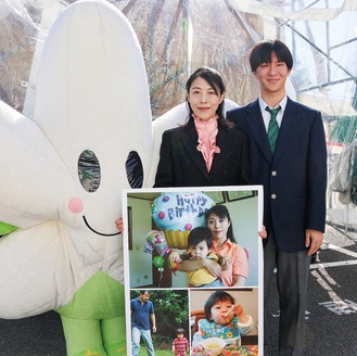 また、実際に手紙を預けた母親の大木しのぶさんと、宛先である高校1年生の悠冬(はると)さん=写真=が登壇し、手紙を中島区長から直接受け取るセレモニーも。しのぶさんは「当時息子は1歳ちょっと、ベビーベッドで寝ている時期。やっとお昼寝をしてくれた、その間に慌てて手紙を書きました」と振り返り、子育ての思い出を語りながら「毎日がキラキラしていました」と語った。悠冬さんは「いろんな気持ちを持って接してくれたんだなと心が温まりました。一生の宝にしたい」と喜んでいた。