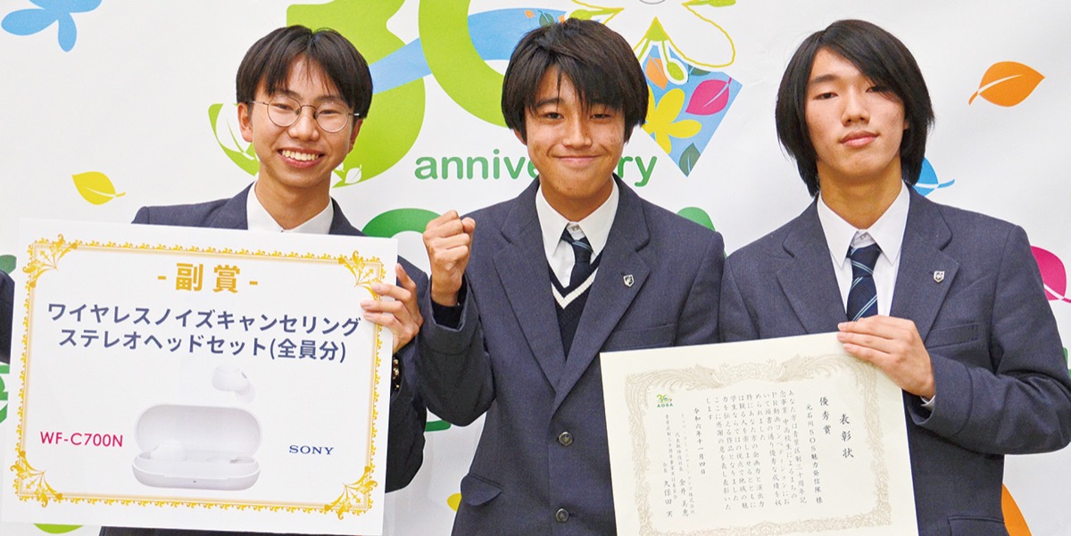優秀作品の『快適なまち』を制作したのは、元石川高校放送部1年の佐藤竹琉さん、奥木隼人さん、品田黎さんによる「元石川 SOS 魅力発信隊」。青葉区のアクセスの良さを寸劇仕立てで紹介した。3人は「皆で作り上げたものが評価されて嬉しい、貴重な経験だった」と話していた。