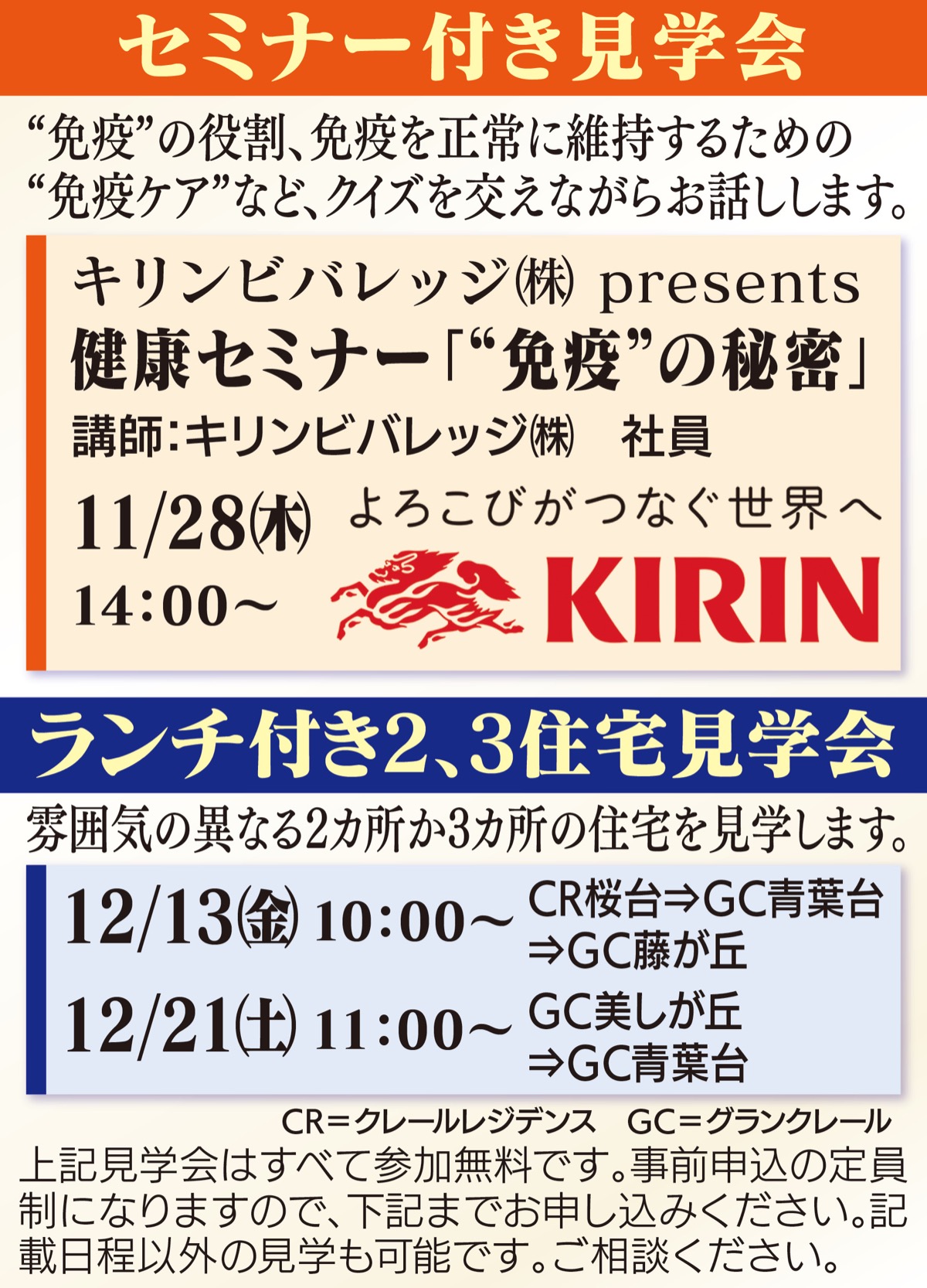そんな同住宅で11月28日(木)、キリンビバレッジ(株)による見学会付き無料セミナー「”免疫”の秘密」を開催。その他、ランチ付き見学会も企画している。モデルルームも新設しているので、参加してみては。