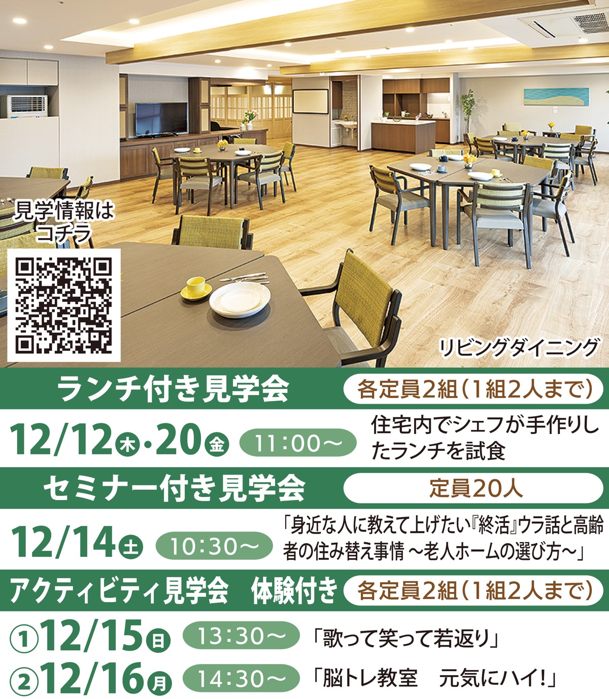 現在、体験入居を受付中。すぐに入居ができる「家具付き住戸キャンペーン」も限定1室で用意している。
