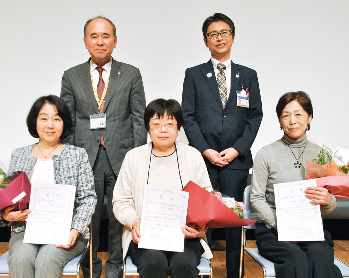 区長賞には、PN(ペンネーム)ゆうこさんの作品「見守りに 感謝の言葉で 励まされ」が選ばれた。区民児協会長賞には、PNほおずきさんの作品「元気だよ〜 あふれる笑顔に ほっとする」に決定した。また、区民まつり賞には匿名希望の「『ありがとう』 その一言で すくわれる」が選ばれた。最後には、記念撮影が行われ受賞した3人は喜びの表情を見せていた。