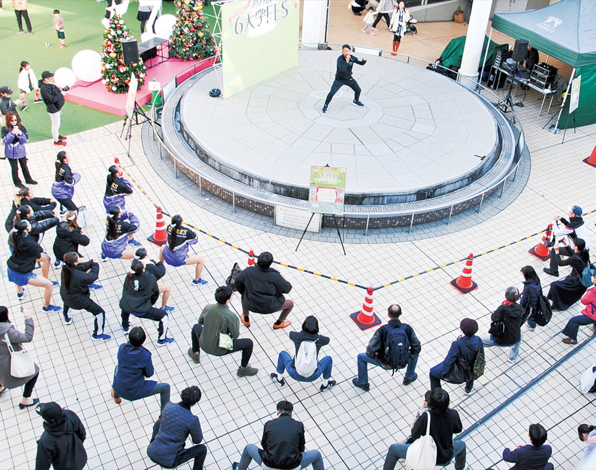 行政や教育機関と連携し、昨年に続いて2回目の開催。今年はたまプラーザテラスで12月6日に「ふれあい福の市」と題して障害者福祉施設などによるマルシェやミニ手話講座、7日に「あおば6大学FES」が行われ、多くの人が訪れた=写真。