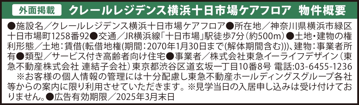 東急不動産HDグループ運営 「クレールレジデンス横浜十日市場ケアフロア」 要介護者向け介護住宅