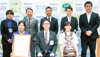 日本体育大学女子サッカー部は2月26日、中島隆雄青葉区長を訪問し、第33回全日本大学女子サッカー選手権大会優勝を報告した=写真。