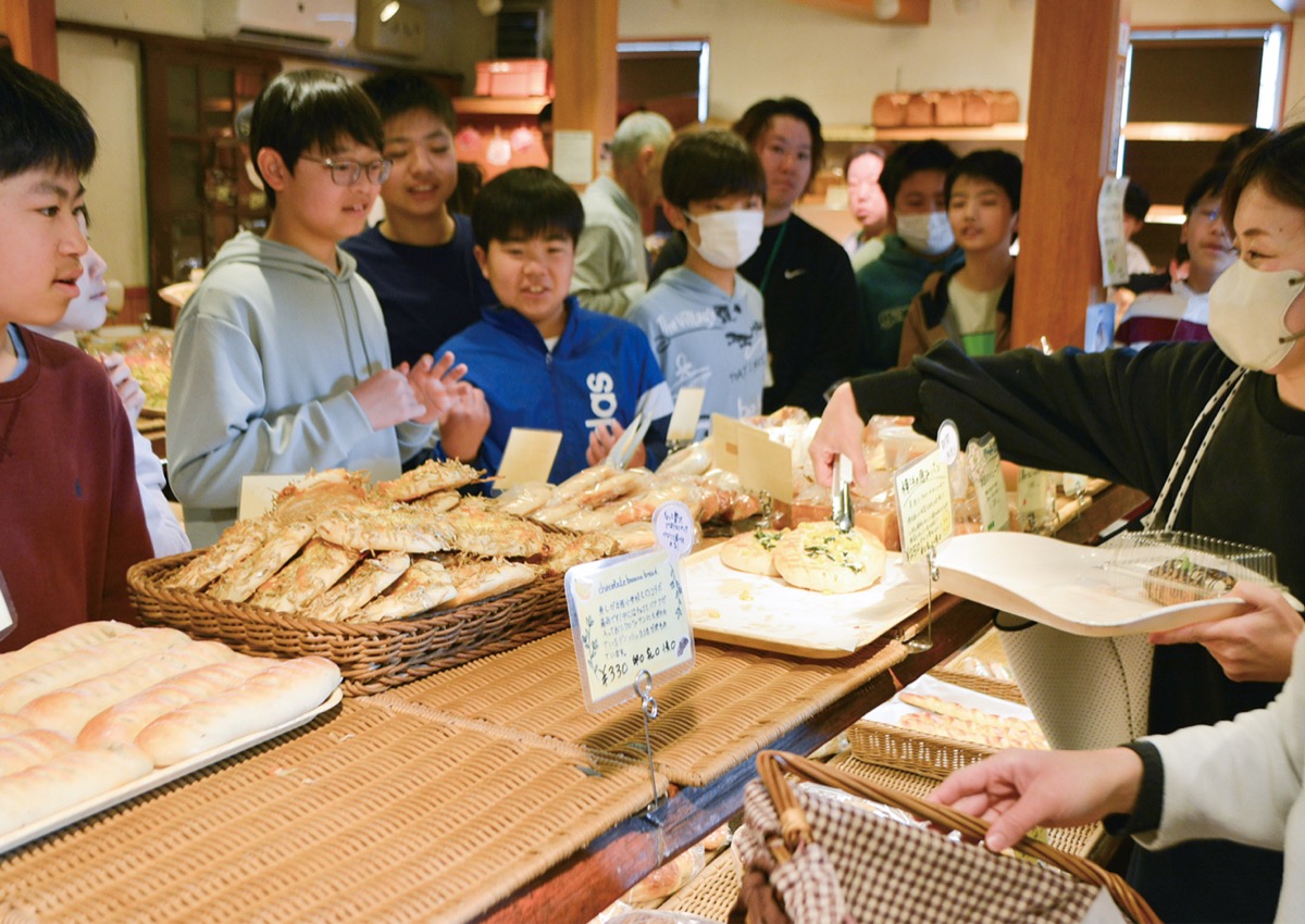 美しが丘西小学校6年2組(福下雄太郎教諭)の児童が、地元美しが丘西のベーカリー「パンステージ プロローグ」(山本敬三オーナーシェフ)と協同して新商品を初めて開発。3月14日には実際に店頭で販売している様子を見学した。