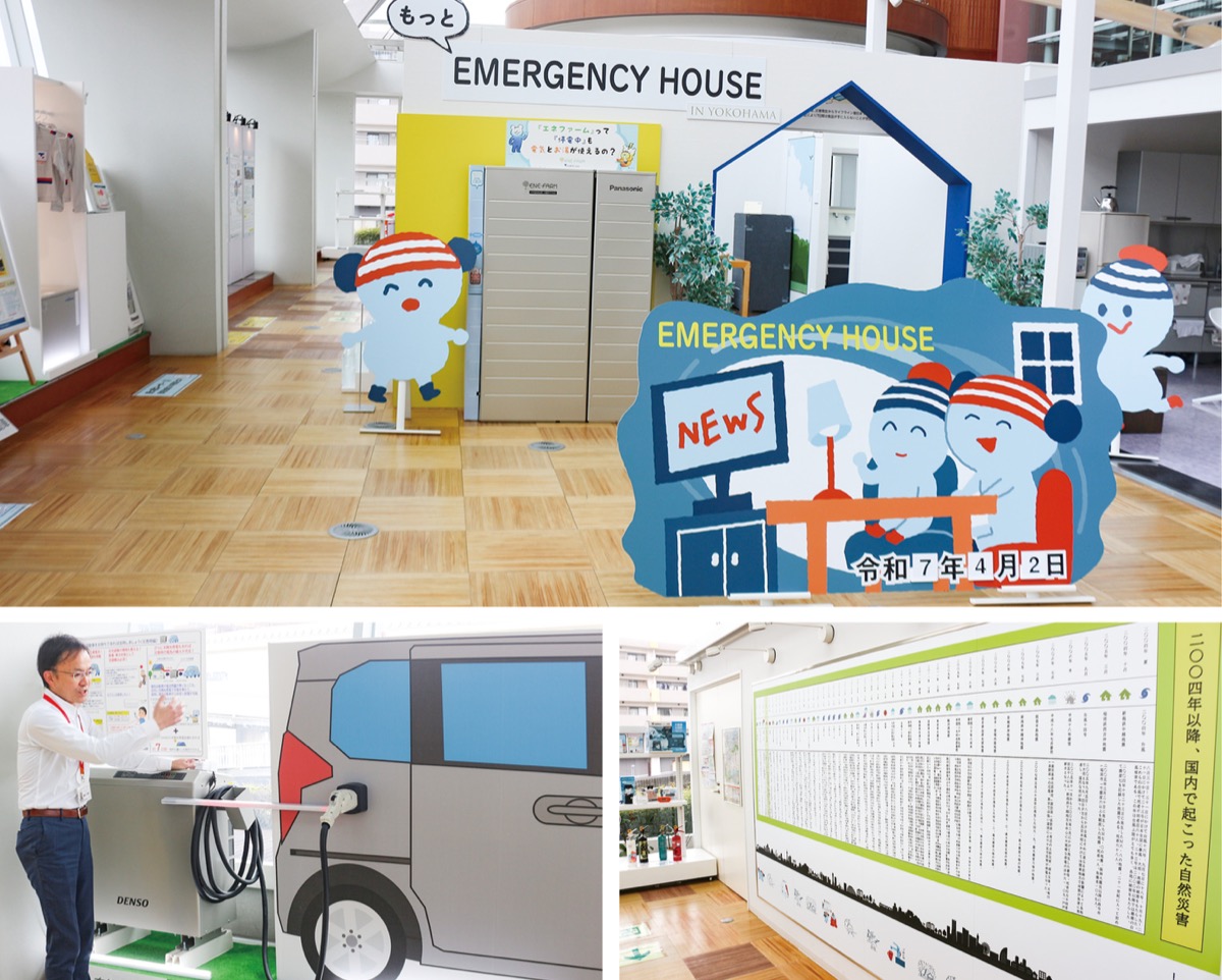 「エマージェンシーハウス」は、東京ガス横浜中央エネルギー株式会社が、4年前にショールームの一画を壁で覆い、家屋内に見立て、開設した展示室。ハウス内は「7日間」をキーワードに、災害時の「在宅避難」に必要な備えを分かりやすく具現化している。同ハウスを使った防災啓発活動について、都筑区や青葉区、西区と協定を結んでいる。近隣の小学校や自治会、行政、企業などこれまでに3000人以上の見学実績がある。