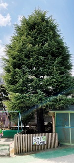 もえぎ野幼稚園で開園時(1972年)から園児たちを見守ってきたシンボルツリーのヒマラヤスギが4月13日に伐採された。