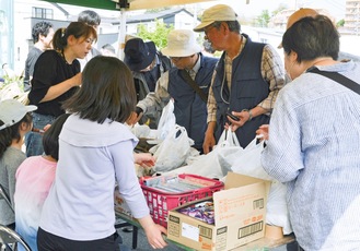 JA横浜中里支店で4月19日に行われた「春の園芸フェア」に、谷本小学校6年生有志が出店した。10人弱の児童が、同校敷地内の竹林でその日の朝収穫したばかりのたけのこを販売した。