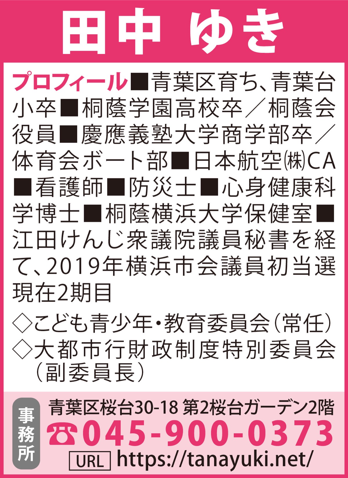 令和7年4月1日施行の、横浜市公園条例の一部改正により、市立公園内において禁止する行為に「喫煙をすること(紙巻・葉巻・加熱式たばこ)」が追加され、市内全ての公園は禁煙となりました。私はこれまで、青葉区の皆さんから、望まない受動喫煙や、たばこのポイ捨てに関する沢山のご相談を受け、議会にて公園や路上の禁煙化を訴えて来ました。まずは子ども達の遊び場であり、地域の皆さんの憩いの場でもある公園での禁煙化が始まり、市の受動喫煙対策が一歩前進したことを評価しています。