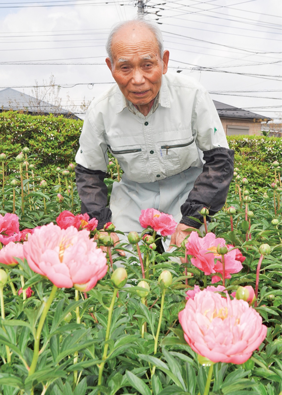 「今年もいつも通り良く咲いた」と話すのは、志村善一さん(85)。父が戦前から始めたシャクヤク農園を引き継ぎ、丹精込めて育てている。今年は約40種類もの花が畑を彩る。