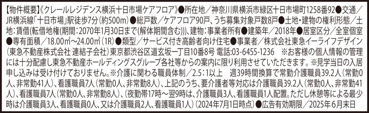 東急不動産HDグループ運営 「クレールレジデンス横浜十日市場ケアフロア」