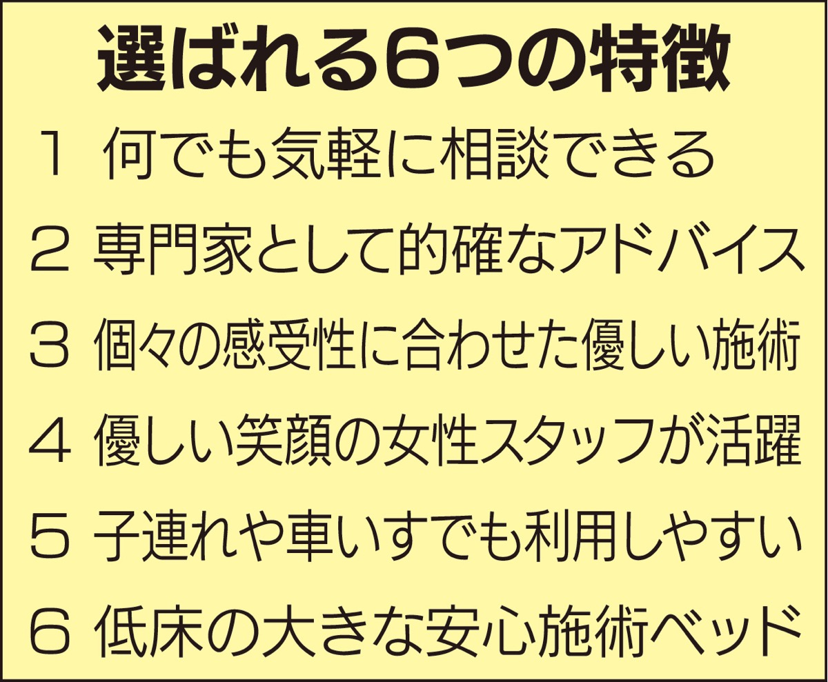 施術は1回6900円。初見料別途4400円が「タウンニュース見た」で2200円。根本改善を目指すため時間単位では行われていない。
