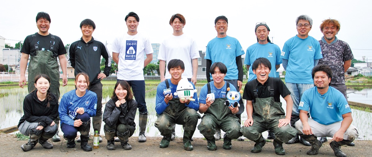 「横浜FCアグリプロジェクト”ハマ米”」と題して同チームの選手が市内産米の育成に携わる同取組。市内産米の知名度向上と市内消費を促すことで、地域農業の活性化を目指す循環型の取組で、持続可能な開発目標(SDGs)の「住み続けられるまちづくりを」の実現を目指している。