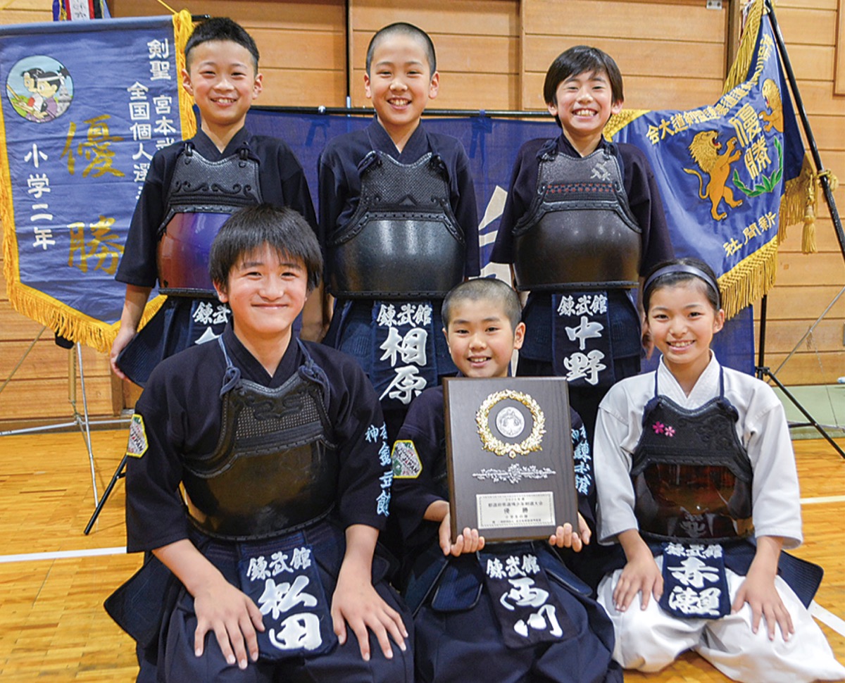 「第39回神奈川県道場少年剣道大会」が5月25日に寒川町で行われ、青葉区内で活動する剣道道場・錬武館(岩藤竜也代表)Aチームの松田修太郎さん(小学6年)、西川洋平さん(同)、赤瀬陽香さん(同)が初優勝を果たした。同館Bチームもベスト8に入り、両チームは7月の全国大会へ挑む。