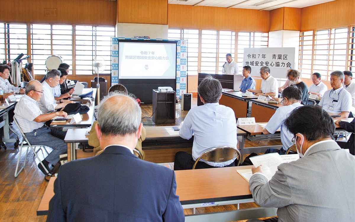 地域の安全と安心を確保するため、関係機関・団体と地域住民の相互理解を目的とした「青葉区地域安全安心協力会」が6月19日、青葉警察署で行われた。警察署、消防署、区役所、区内や近隣の企業・団体の代表者約25人が参加した。